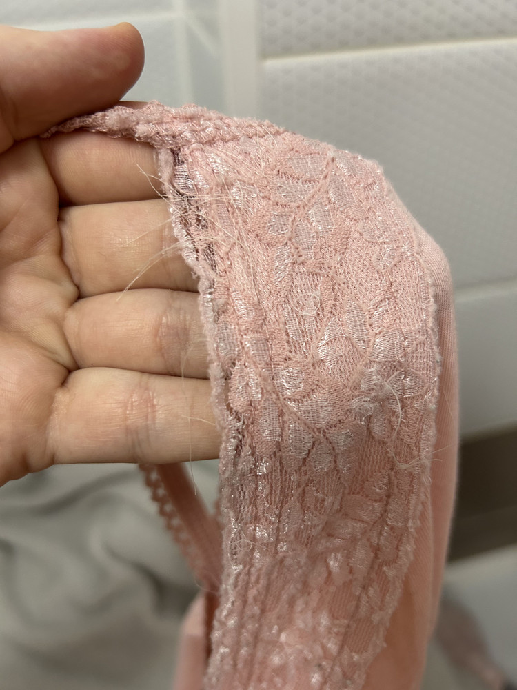 Сам трикотаж хороший, а вот кружево превратилось в тряпку , вылезли резиночки ( или как правильно, не знаю ) пару стирок и уже вещь не пригодна